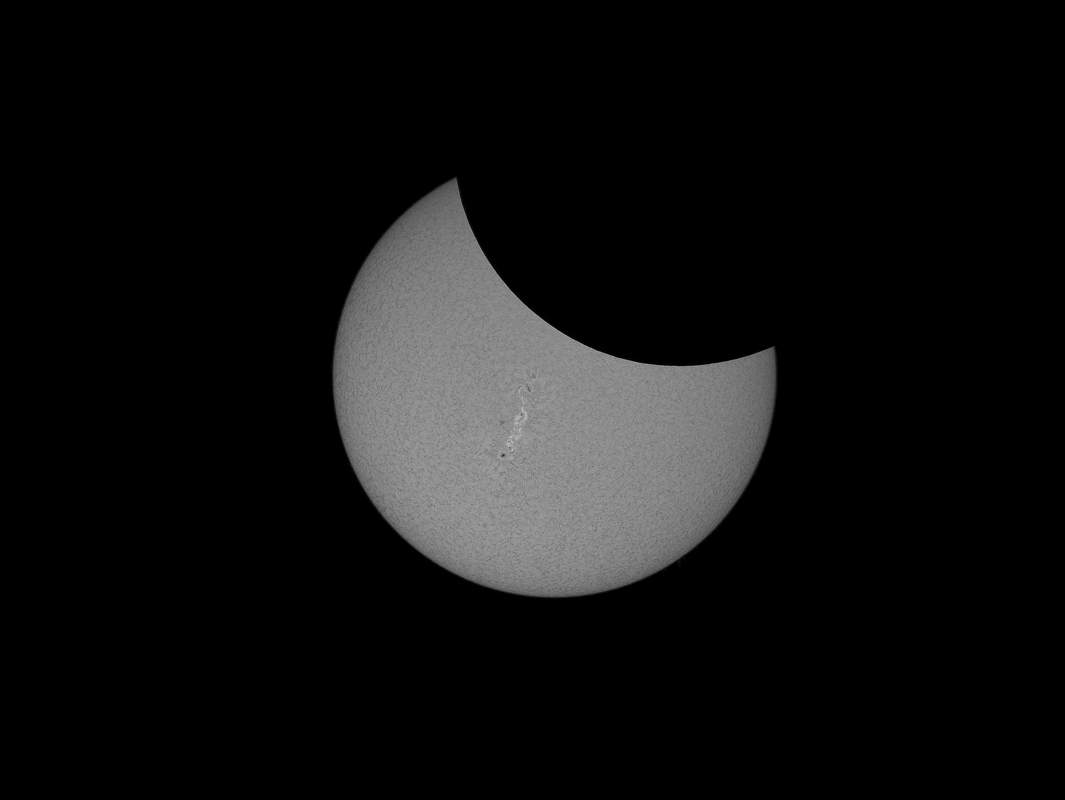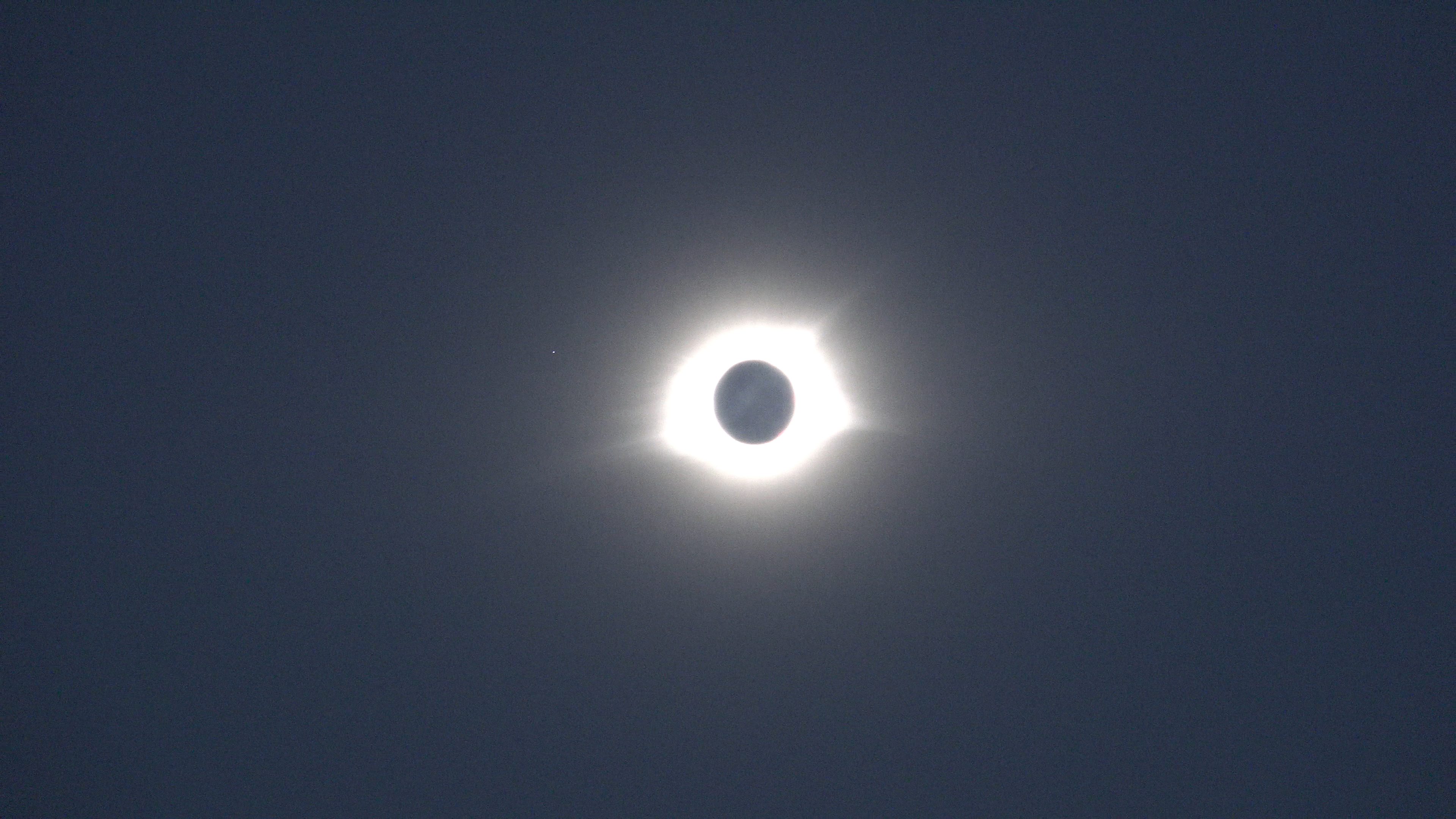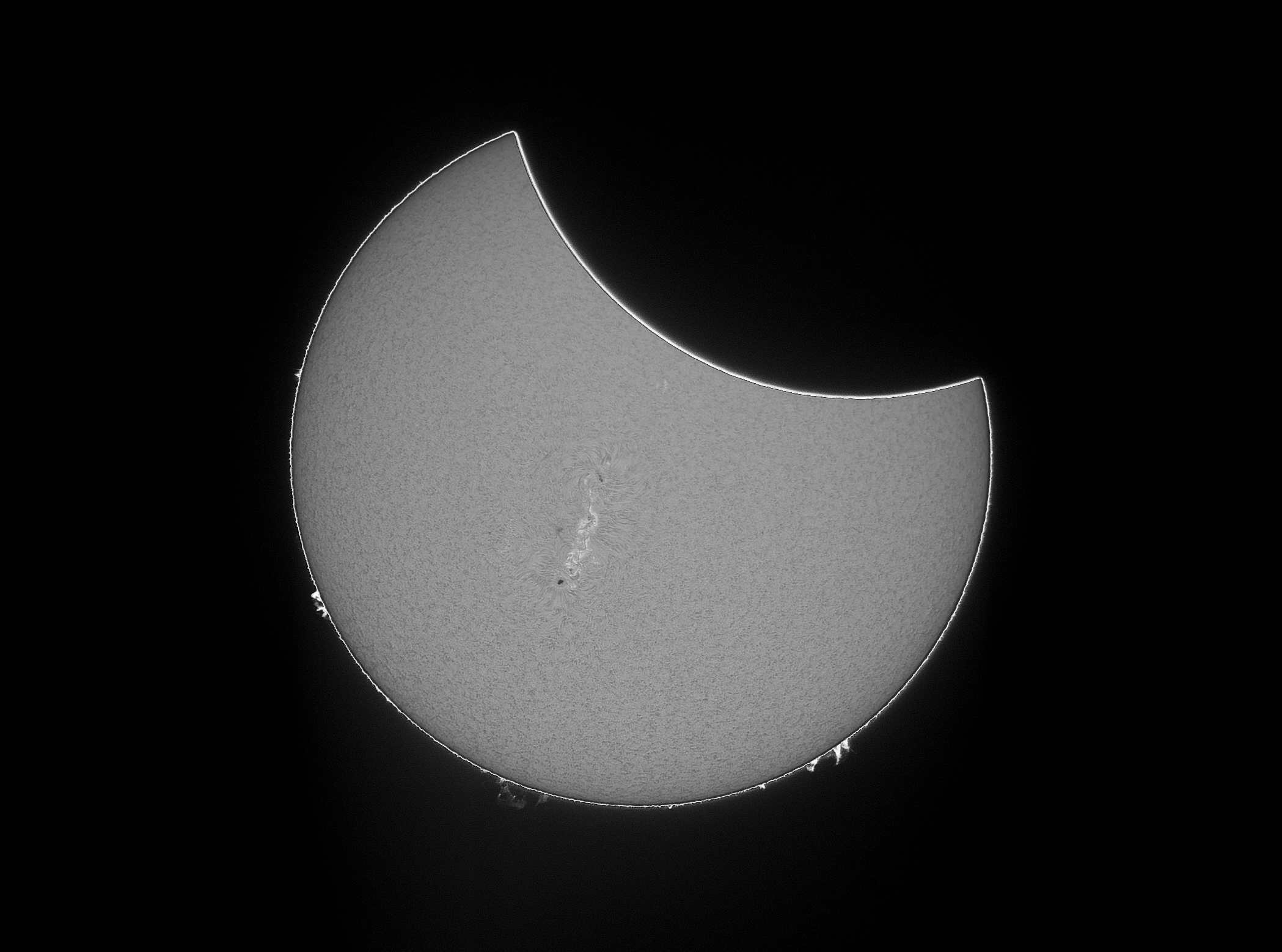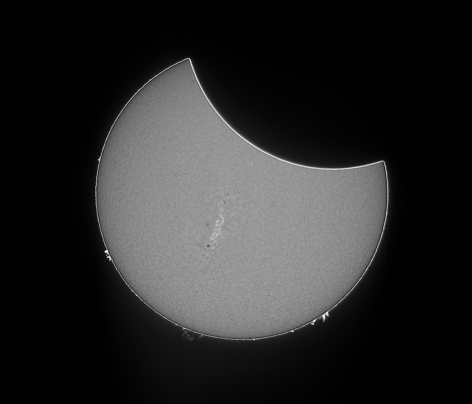 The first part of the eclipse had clouds that affected viewing significantly. You can see clouds bands in two of the images. We lost about 20 minutes to heavy cloud cover in the first half of the eclipse. While it did clear up, you can see clouds drifting across totality in the video and the above image. It wasn't really visible to the eye or the brain just blasted it away. These clouds did play havoc with the imaging. It was hard to normalize the intensity and there are images taken with much worse seing. The eclipse was still and absolutely incredible thing to see. |