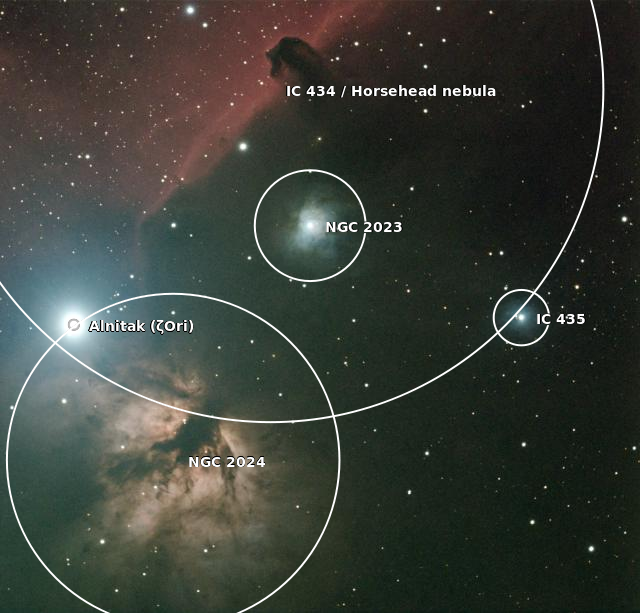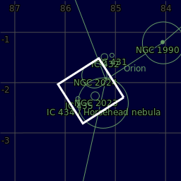 The next three images indicate the location of the Horsehead and Flame Nebulae and come from a plate solve at astrometry.net