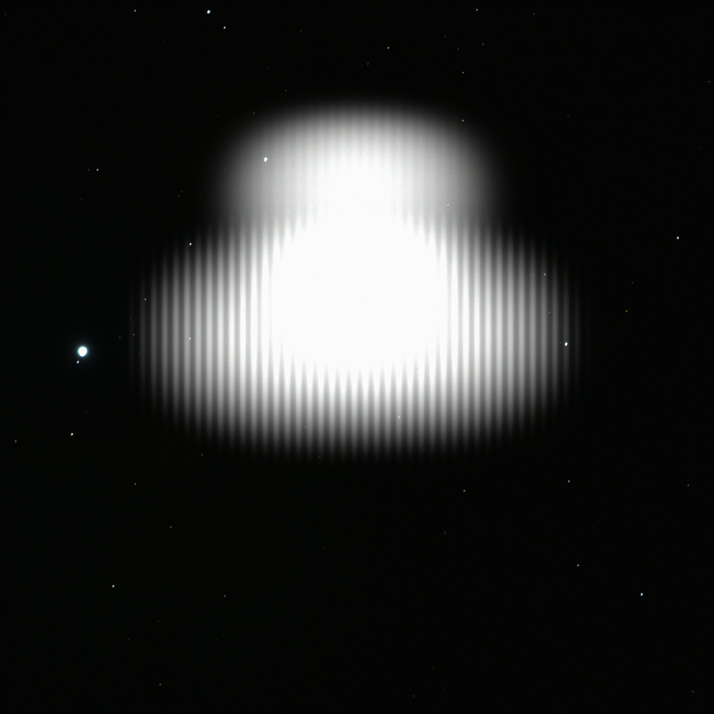 The image was guided with the interal guider at 15 sec intervals. The rms error was 0.18 pixel.
