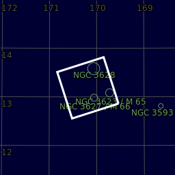 The bottom three images indicate the location of the Leo Triplet and come from a plate solve at astrometry.net