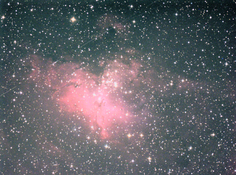 As I was imaging the Eagle Nebula, the area turned into a Satellite Crossing. Two satellites crossed within a time span of 6 minutes. Hit the Next button above to go to the full Eagle image.