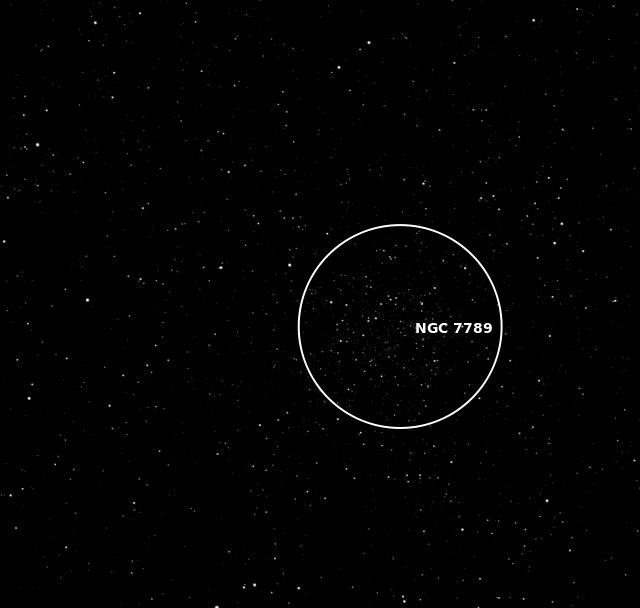The bottom two images indicate the location of NGC 7789 and come from a plate solve at astrometry.net