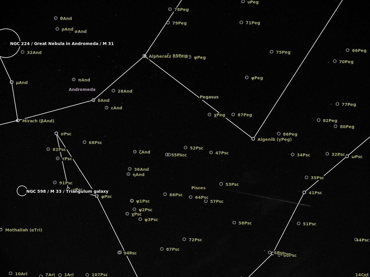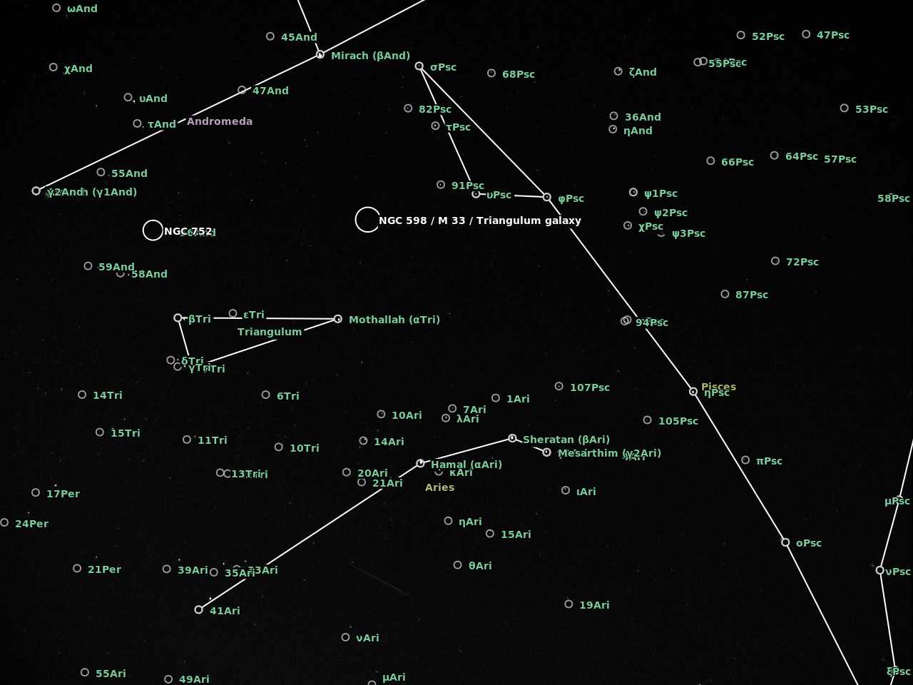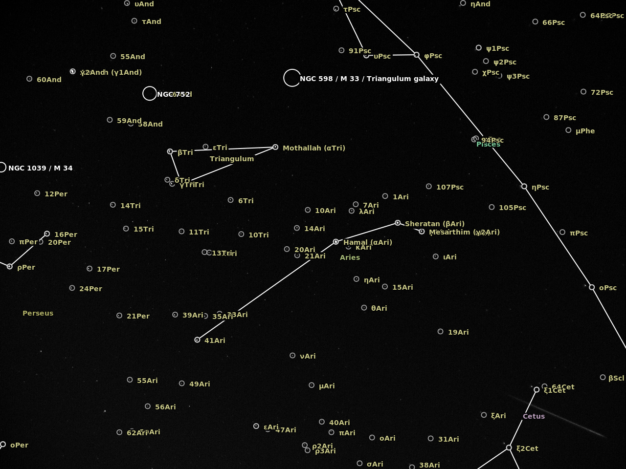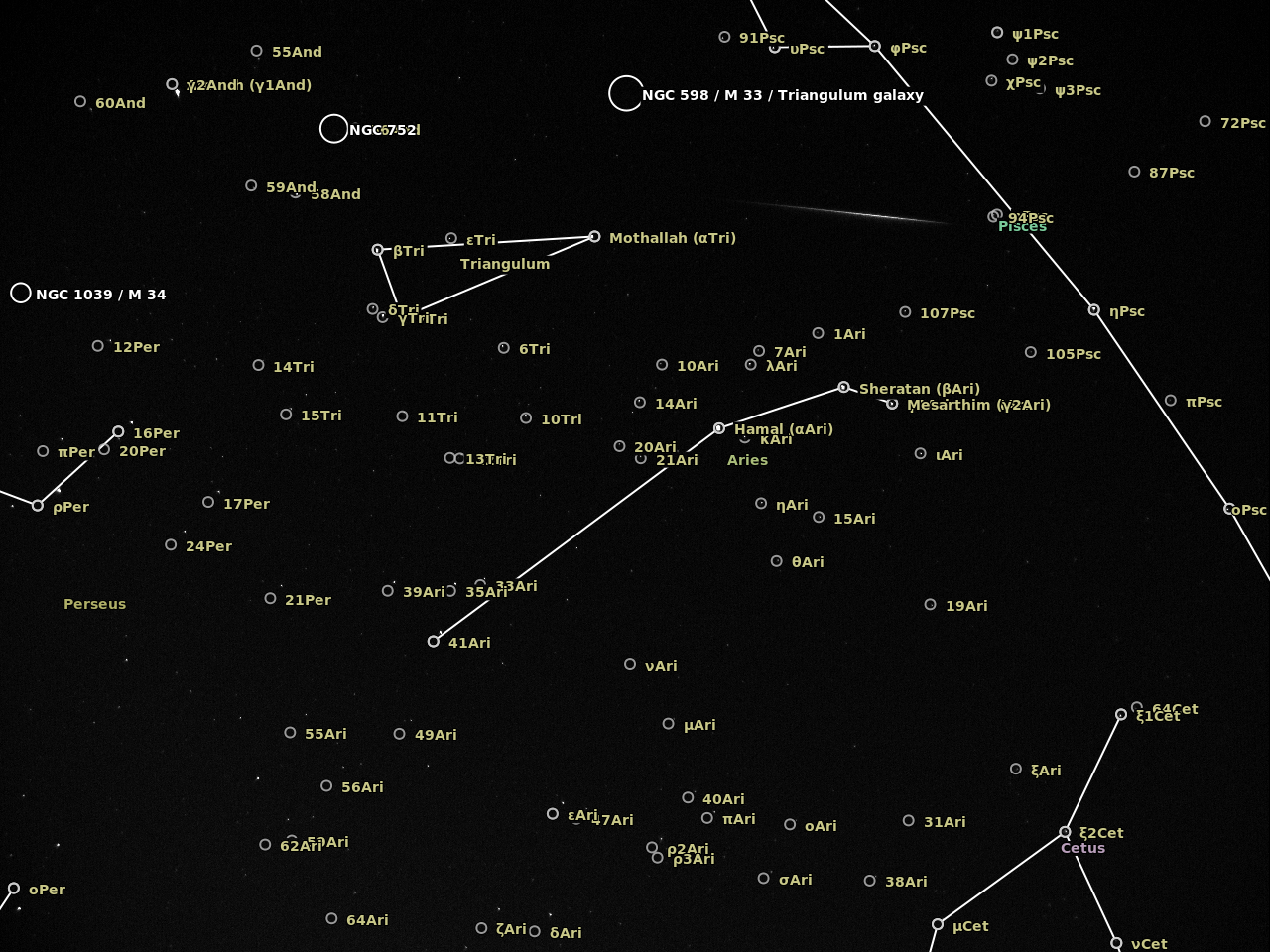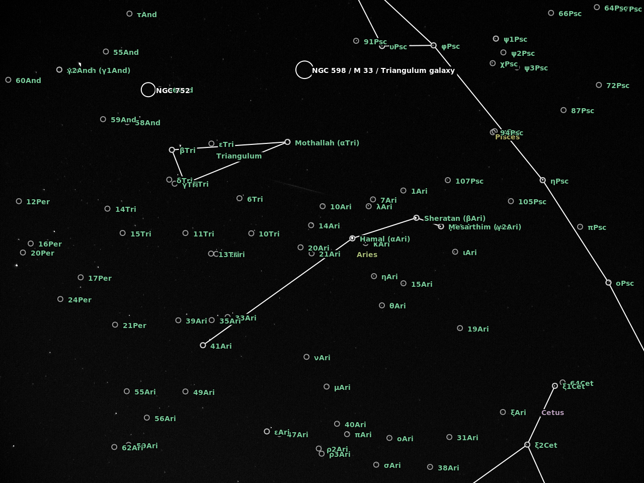 The camera was an Imaging Source DMK41BF02 controlled with AstroIIDC. A cheap CS lens was attached to the camera with the entire device supported on a camera tripod. I was shooting wherever I could at the start and then focused on Aries which was in the path of a number of meteors. The plate solving at astrometry.net is a bit off but does give an idea of the radiant in Perseus..