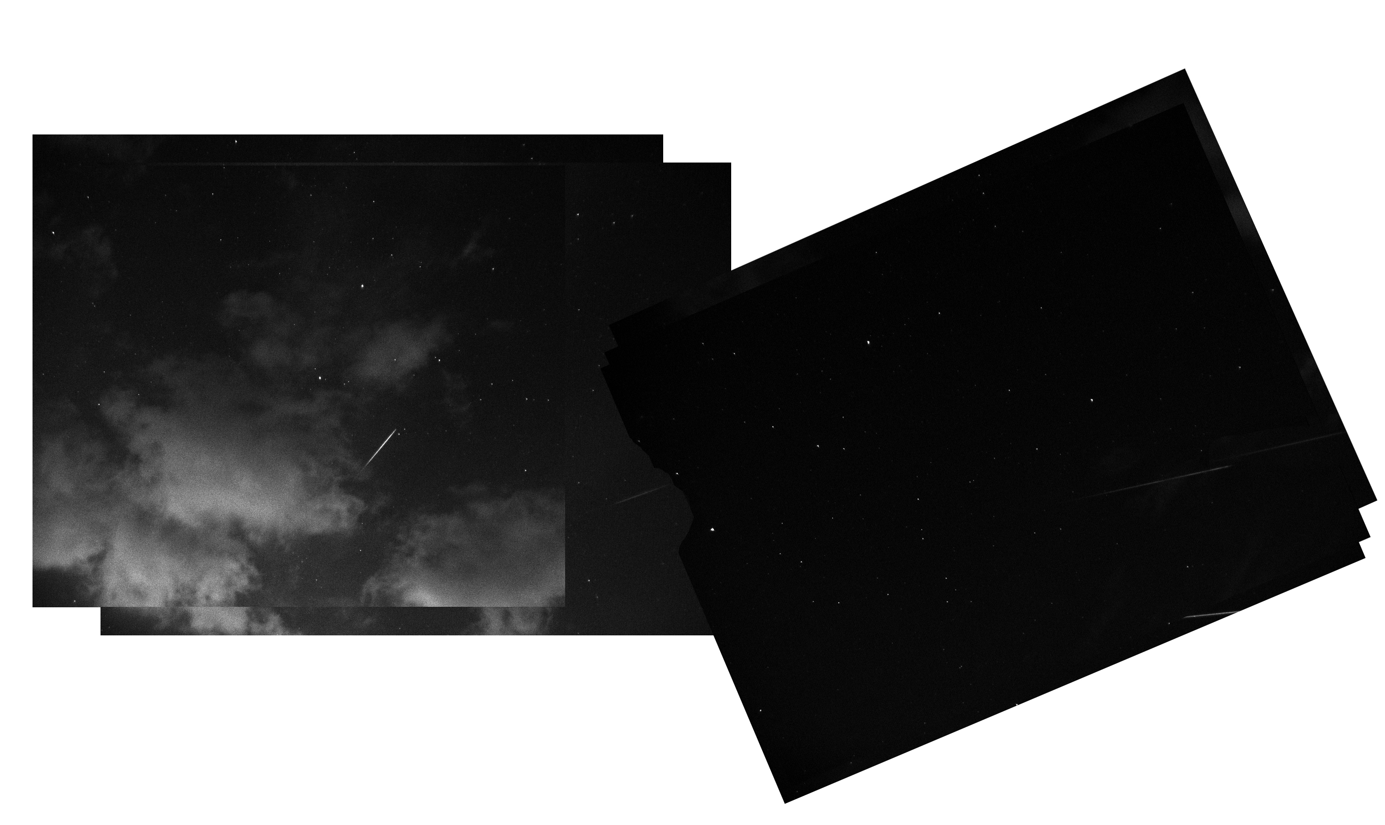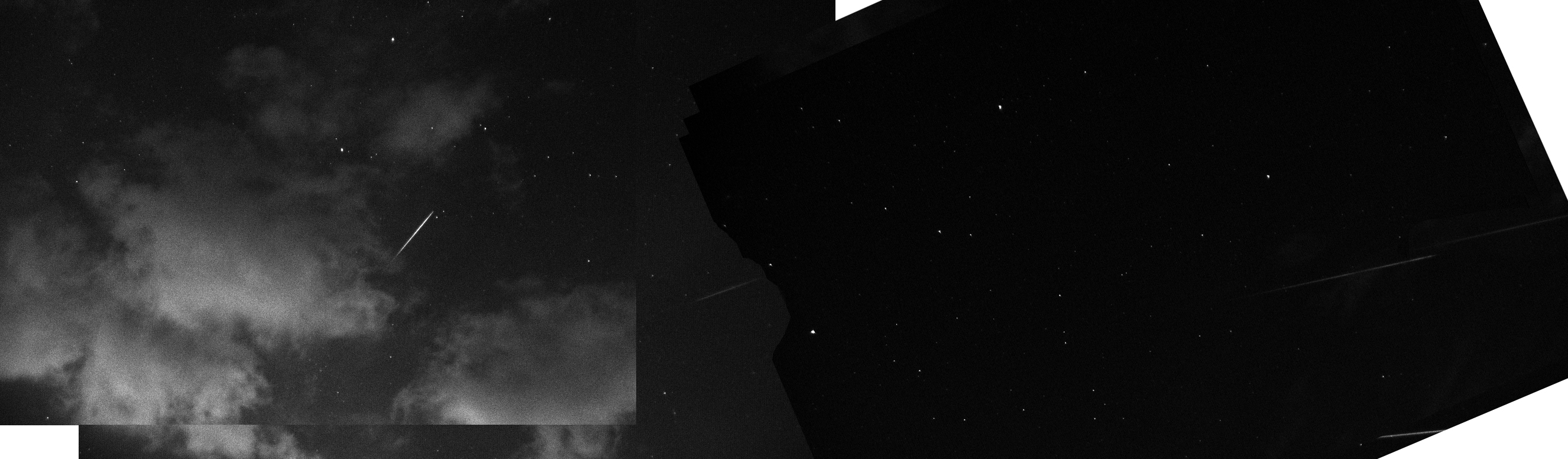 The images show Perseid meteors caught during the night of Aug 11-12, 2012. Unfortunately, the night started out fairly cloudy. It did improve as the evening went on.