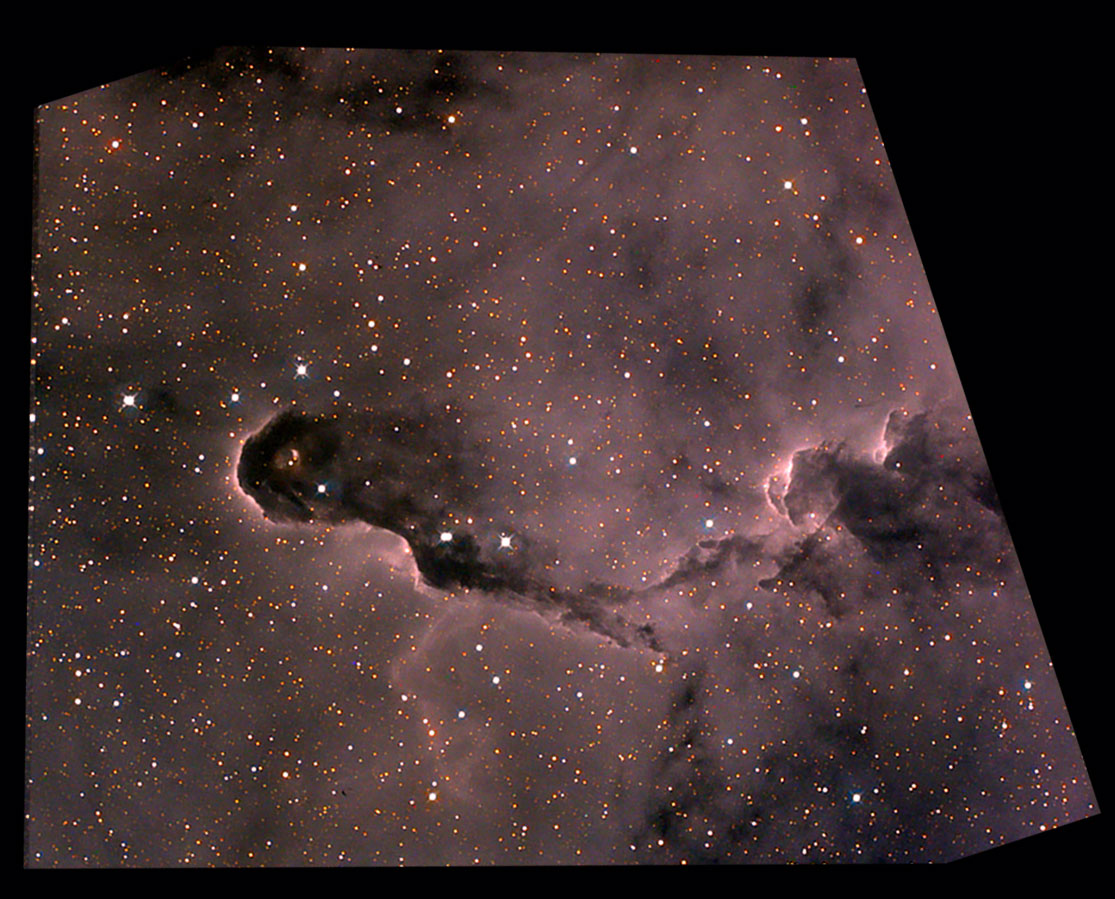 This RGB with Ha luminance image of VDB142 was a large collaborative effort. The color data was collected on Dennis Persyk's Takahashi E-160 f/3.3 scope with my SXV-H9C camera. The H alpha image used for the luminance channel was collected by Brian Brown using his Takahashi E-250 with an SBIG ST-2001XM camera. The Ha data was a sum of twenty-one ten minute images for a total of 3.5 hours. You can see Brian's excellent image here. The RGB data was a sum of five ten minute images for a total of 0.83 hours. What a difference a couple of hours makes. |